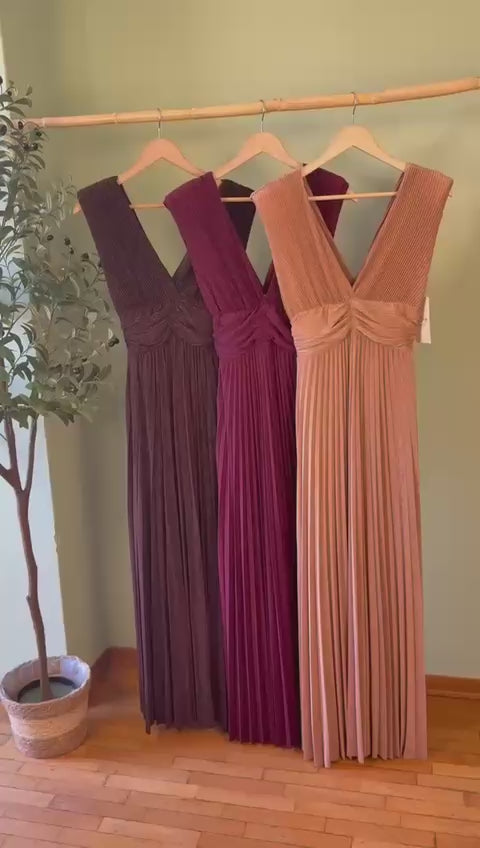 Vestido formal elegante con escote en V, perfecto para momentos especiales donde el estilo y la comodidad se encuentran.
